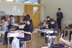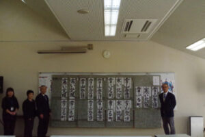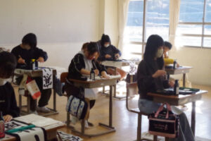 トップNEWS中学校第31回全淡小学生書き初め席書大会が行われました 2026.01.11 中学校 第31回全淡小学生書き初め席書大会が行われました 1月10日(土)の9時30分より第31回全淡小学生書き初め席書大会が行われました。大会には島内の小学4~6年生20校36名が参加し、4年生は「雪ふる町」5年生は「寒い北風」6年生は「雪山登頂」という当日出されたお題に対して70分の書き初めを行いました。 開会式はオンラインで、閉会式は行わず席書のみの大会で、賞状は後日各小学校に送られます。なお、入賞者の作品は1月23日まで生徒玄関ホールに掲示されます。