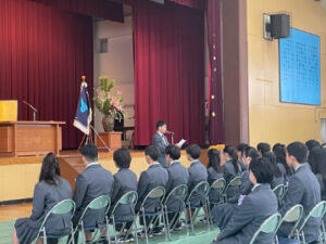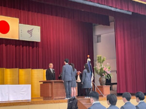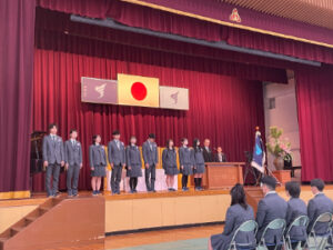 トップNEWS高等学校令和7年度蒼開高等学校卒業式がありました 2026.02.28 高等学校 令和7年度蒼開高等学校卒業式がありました 2月28日(土)に令和7年度蒼開高等学校卒業式がありました。 高校3年生60名に卒業証書が授与されたあと、各種表彰、学校長の式辞、在校生代表の送辞、卒業生の答辞がありました。今年度の答辞は各コースより一名ずつが担当し、それぞれの在学中の思い出などについて語ってもらいました。 式の最後には卒業生による「栄光の架け橋」の斉唱がありました。 天候にも恵まれた良い卒業式となりました。