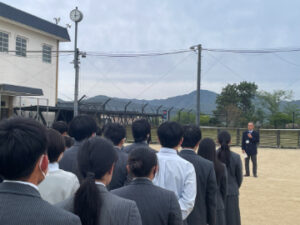トップNEWS中高共通避難訓練がありました 2026.04.22 中高共通 避難訓練がありました 4月22日(水)の6時間目に避難訓練がありました。 紀伊半島沖で巨大地震が起こったことを想定して、避難までの行程や避難経路の確認と集合・点呼をしました。 校長先生からは防災・減災に関する講話をしてもらいました。